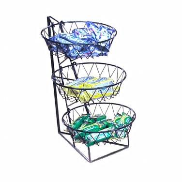 Cal-Mil 1292-3 12"W x 18"D x 22"H Display Rack - Display Stand, Basket, 12"W x 18"D x 22"H, 3-tier, (3) 12" dia. round wire baskets, black powder coated wire,