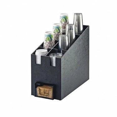 Cal-Mil 2045 9-1/4"W x 19-1/4"D x 16-3/4"H Classic Cup/Lid Organizer - Cup & Lid Organizer, 9-1/4"W x 19-1/4"D x 16-3/4"H, (8) cup/lid compartments, Java jacket dispenser slot (JAVA jacket dispenser sold separately Item 2050),