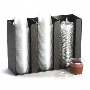 Cal-Mil 278-4 9"W x 4"D x 9"H Classic Lid/Ramekin Organizer - Cup & Lid Organizer, 9"W x 4"D x 9"H, up to 4" diameter, wall or counter mount, plastic, black