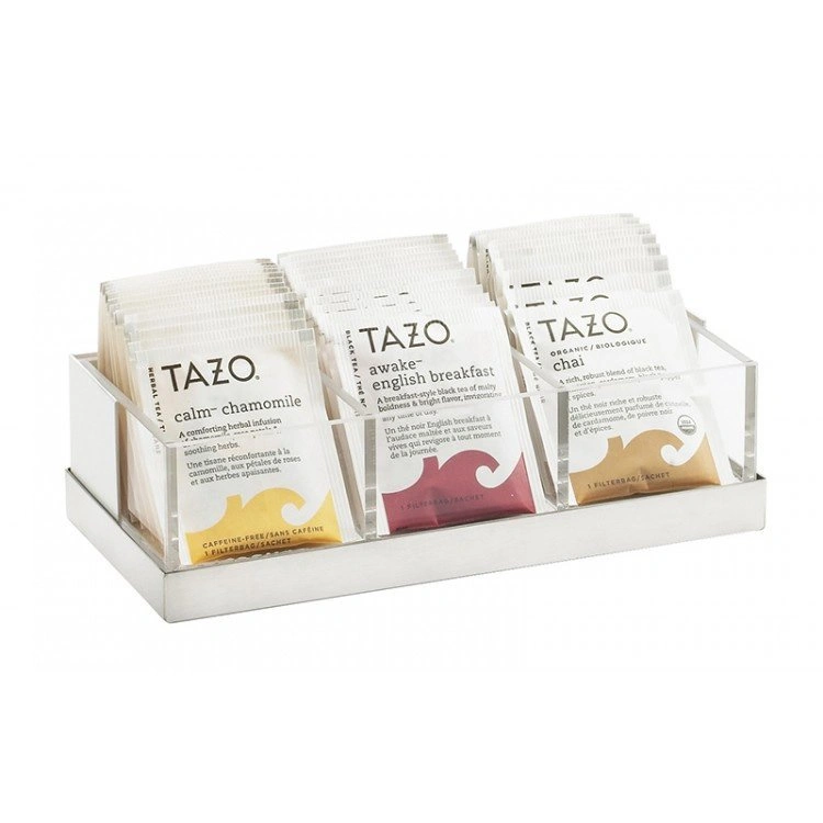 Cal-Mil 3014-55 9-1/4"W x 4-1/2"D x 2-1/2"H Luxe Packet Organizer - Dispenser, Packet, 9-1/4"W x 4-1/2"D x 2-1/2"H, (3) bins, with dividers, stainless steel base accent, white metal frame
