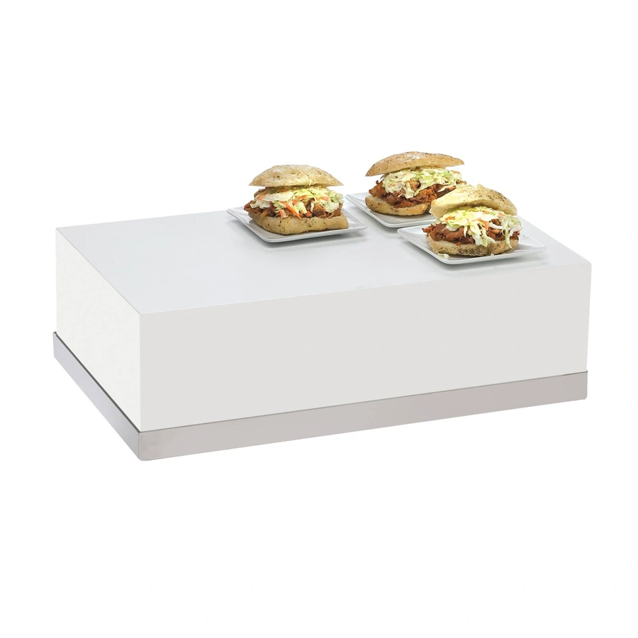 Cal-Mil 3025-55 12"W x 20"D x 6-1/2"H Luxe Display Riser - Display Riser, Individual, 12"W x 20"D x 6-1/2"H, rectangular, white metal body, stainless steel accent base,