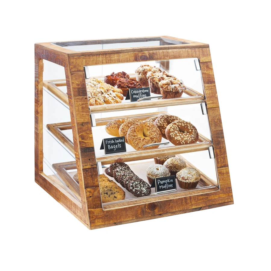 Cal-Mil 3432-99 21"W x 21-1/2"D x 21-1/2"H Madera Bakery Display Case - Display Case, Pastry, Countertop, 21"W x 21-1/2"D x 21-1/2"H, 3-tier, attendant serve, slanted, dual rear doors
