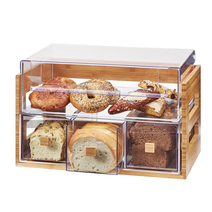 Cal-Mil 3624-60 20-1/4"W x 12-3/4"D x 13-1/4"H Bread Display Case - Display Case, Pastry, Countertop, 20-1/4"W x 12-3/4"D x 13-1/4"H, 2-tier, (3) drawers with knobs, (1) bin with handle, side cutouts