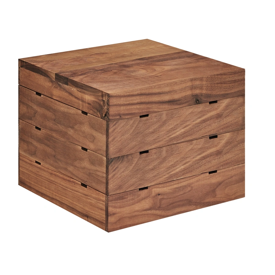 Cal-Mil 3628-10-78 12"W x 12"D x 10"H Mid-Century Crate Riser - Display Riser, Individual, 12"W x 12"D x 10"H, square, slotted for brackets, flip to utilize as crate, walnut