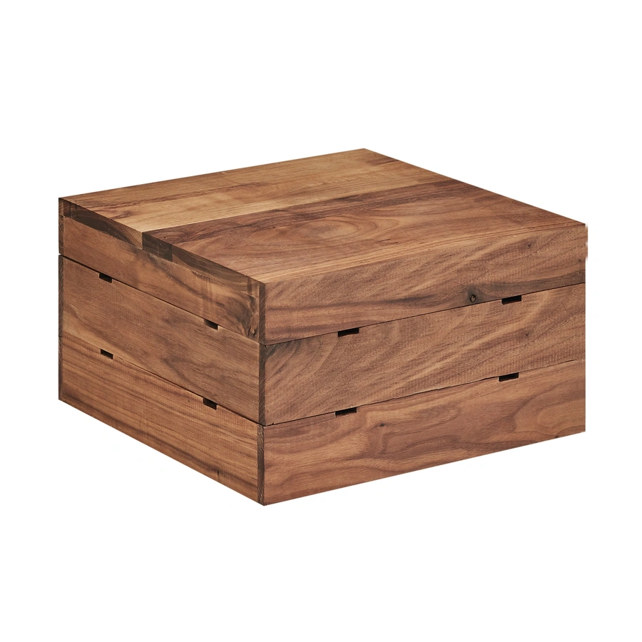 Cal-Mil 3628-7-78 12"W x 12"D x 7"H Mid-Century Crate Riser - Display Riser, Individual, 12"W x 12"D x 7"H, square, slotted for brackets, flip to utilize as crate, walnut