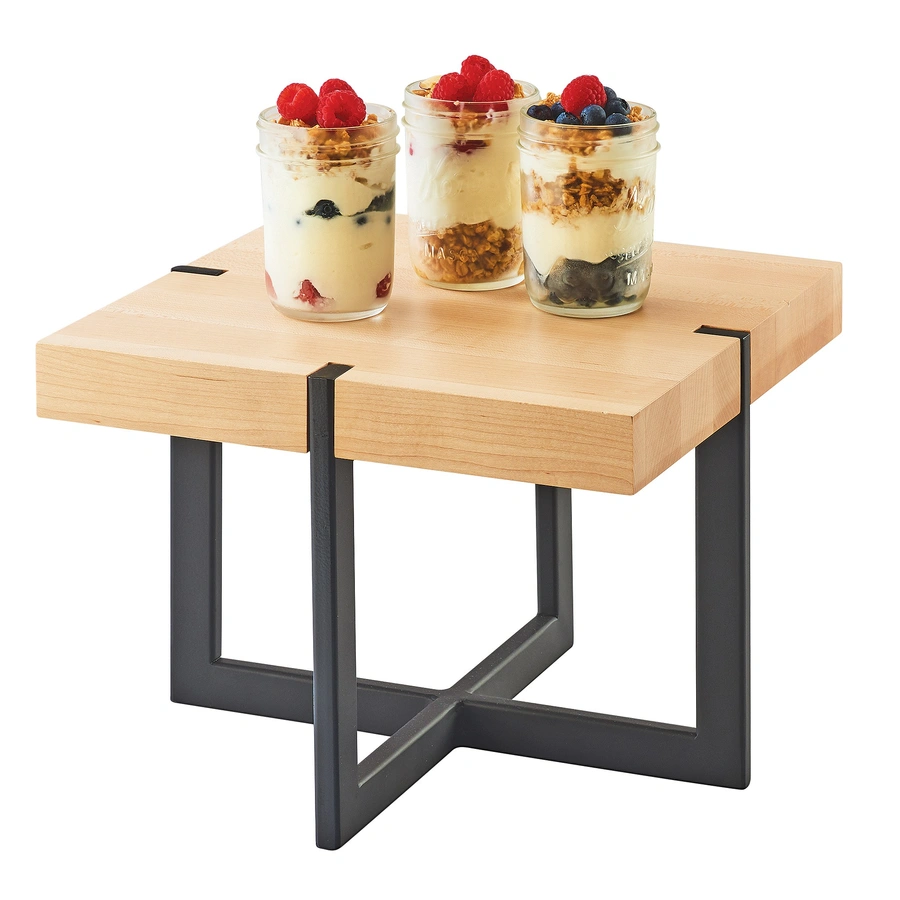 Cal-Mil 3641-12-71 12"W x 12"D x 9"H Display Riser - Display Riser, Individual, 12"W x 12"D x 9"H, square, black metal base, maple,