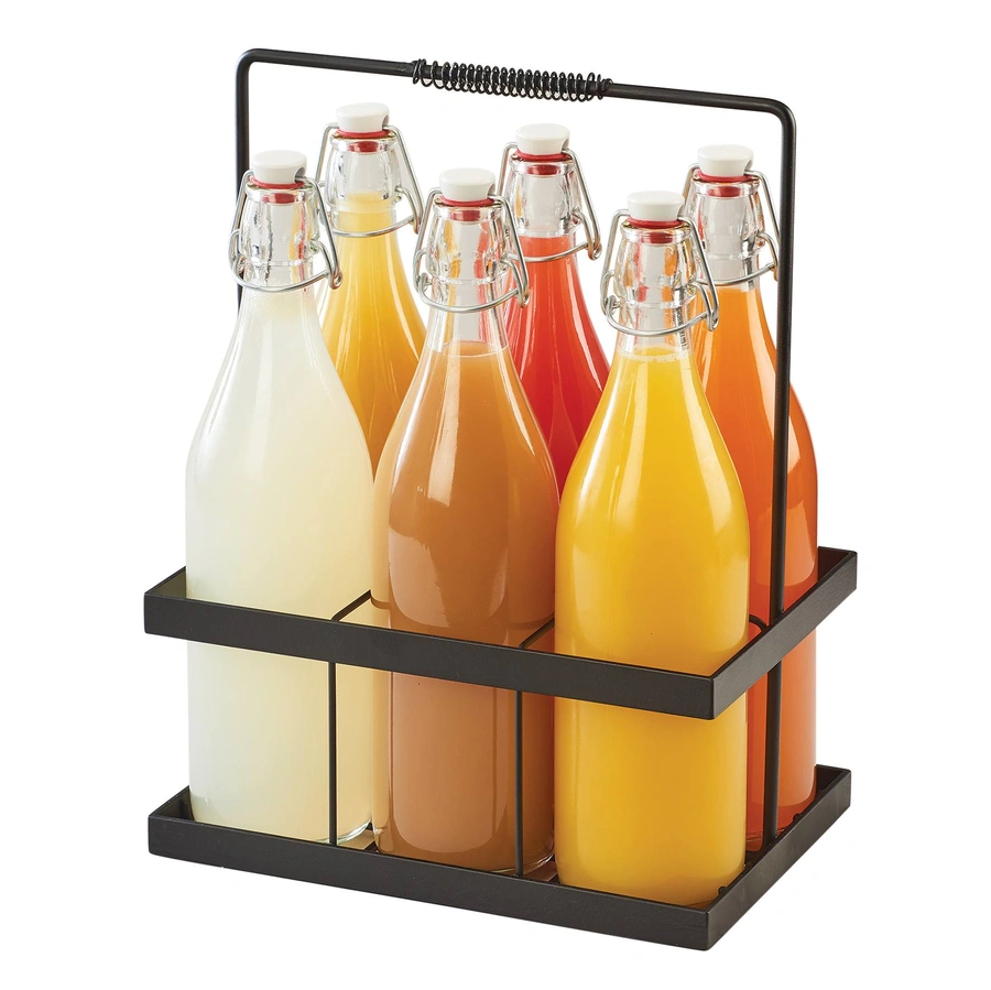 Cal-Mil 3660-13 11"W x 7-1/2"D x 14"H Pitchers & Caddy - Condiment Caddy, Rack Set, 11"W x 7-1/2"D x 14"H, (6) 34 oz. glass pitchers, ergonomic handle, metal, black