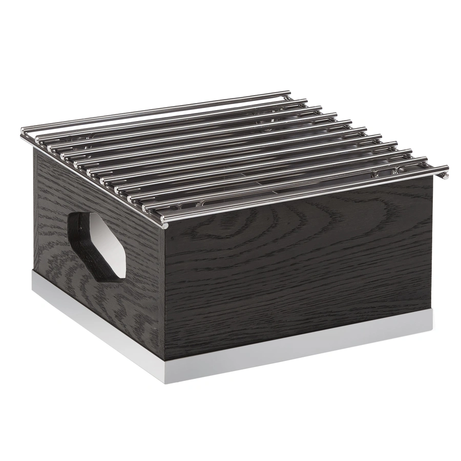 Cal-Mil 3814-87 10-1/4"W x 10"D x 5-1/2"H Cinderwood Chafer Alternative - Chafing Dish Frame / Stand, 10-1/4"W x 10"D x 5-1/2"H, rectangular, metal grill top, built in fuel holder, wind guard