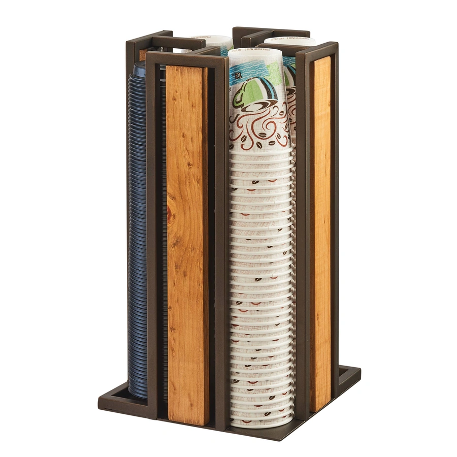 Cal-Mil 3904-84 9-1/4"W x 9-1/4"D x 18"H Sierra Cup/Lid Organizer - Cup & Lid Organizer, 9-1/4"W x 9-1/4"D x 18"H, (4) section, revolving, accommodates cups/lids up to 3-3/4" dia., rustic pine