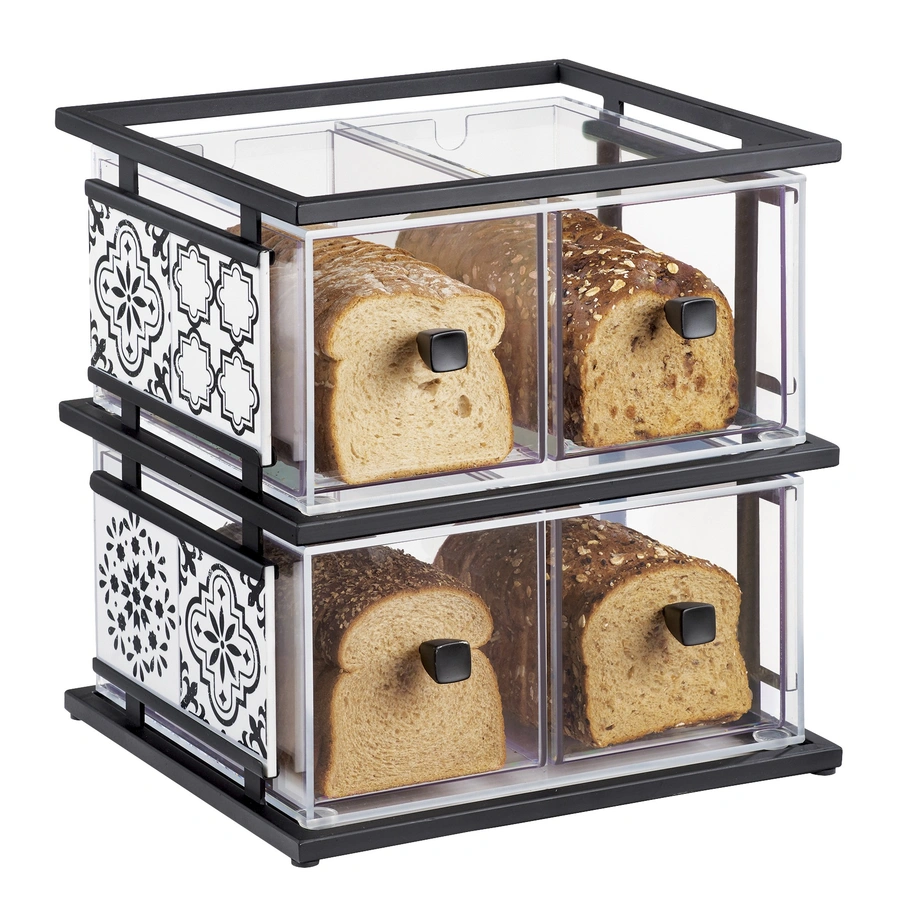 Cal-Mil 4025-85 19"W x 14-1/4"D x 20-1/4"H Granada Bread Display - Display Case, Pastry, Countertop, 19"W x 14-1/4"D x 20-1/4"H, (4) section, (4) removable drawers, Spanish tile design, acrylic