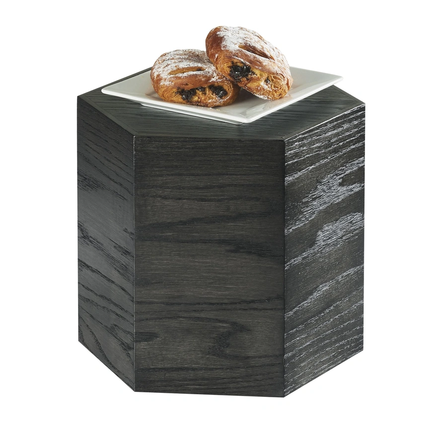 Cal-Mil 435-11-87 12" dia. x 11"H Cinderwood Riser - Display Riser, Individual, 12" dia. x 11"H, hexagon, oak wood, dark painted, BPA Free