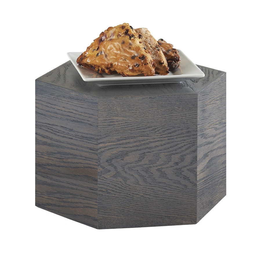 Cal-Mil 435-8-83 12" dia. x 8"H Ashwood Riser - Display Riser, Individual, 12" dia. x 8"H, hexagon, oak wood, gray washed, BPA Free