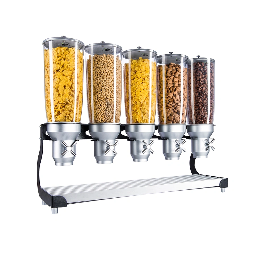 Cal-Mil 590366 (5) 5L capacity cylinders Cereal Dispenser - Dispenser, Dry Products, (5) 5L capacity cylinders, 31-1/4"W x 11"D x 25-3/4"H, turn & serve mechanism, black,