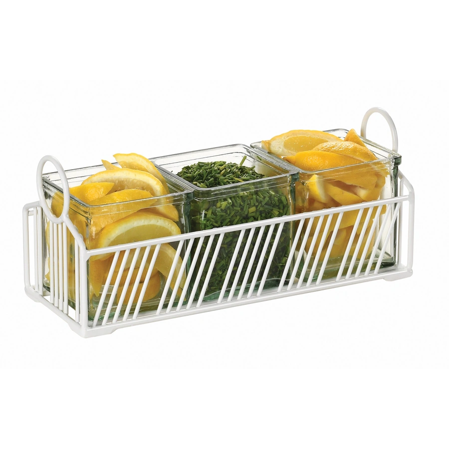Cal-Mil 803974 12-1/2"W x 4-1/2"D x 5-1/4"H Portland Jar Display - Condiment Caddy, Countertop Organizer, 12-1/2"W x 4-1/2"D x 5-1/4"H, rectangular, includes (3) glass jars, metal wire, white