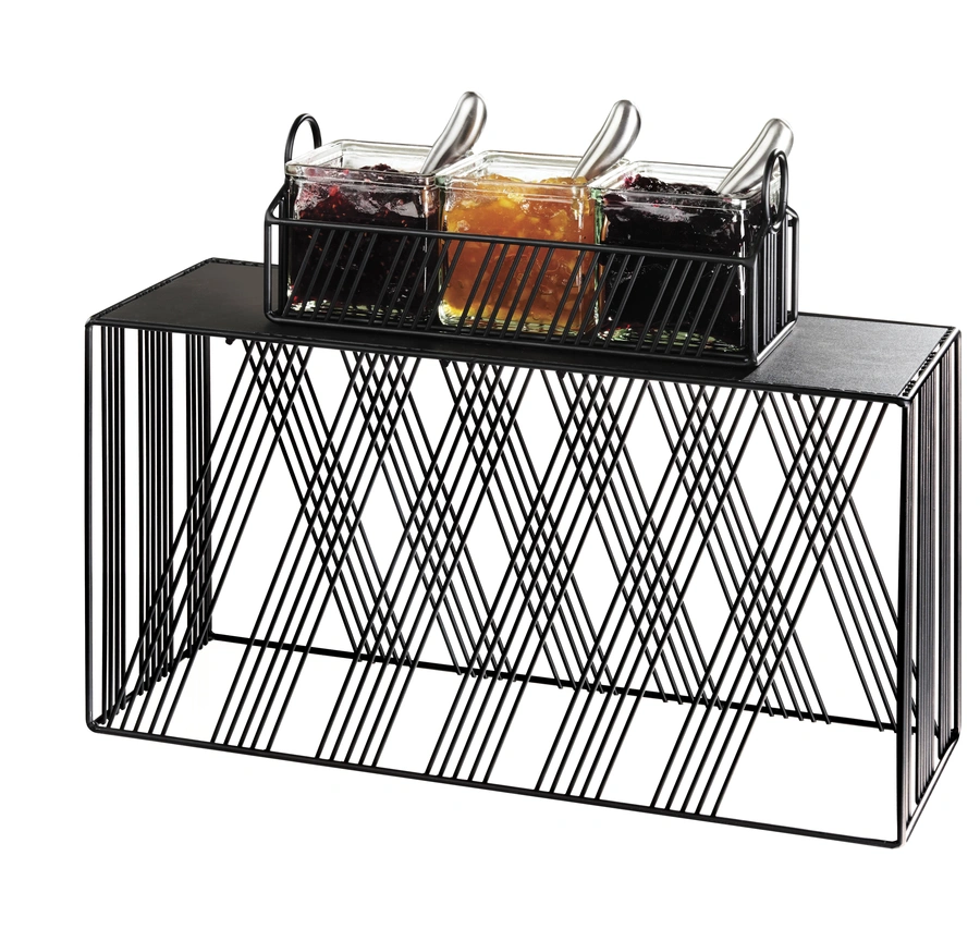 Cal-Mil 804947 20-1/8"W x 7"D x 11"H Portland Riser - Display Riser, Individual, 20-1/8"W x 7"D x 11"H, rectangular, removable bread board, iron wire, black