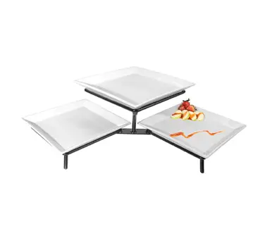 Cal-Mil PP1600-13 34"L x 16"W x 9"H Plate Display - Display Stand, Tiered, 34"L x 16"W x 9"H, 2-tier, (3) square porcelain plate, black metal stand,