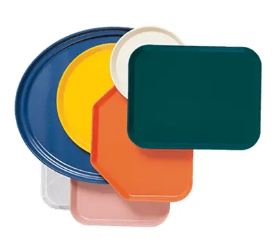 Trapezoid Camtrays save tabletop space and increase seating capacity in busy cafeterias! Four people can sit comfortably at smaller tables as four of these trays will fit on the top of a 36 inch (91,44 cm) square table with room in the center for condiments!