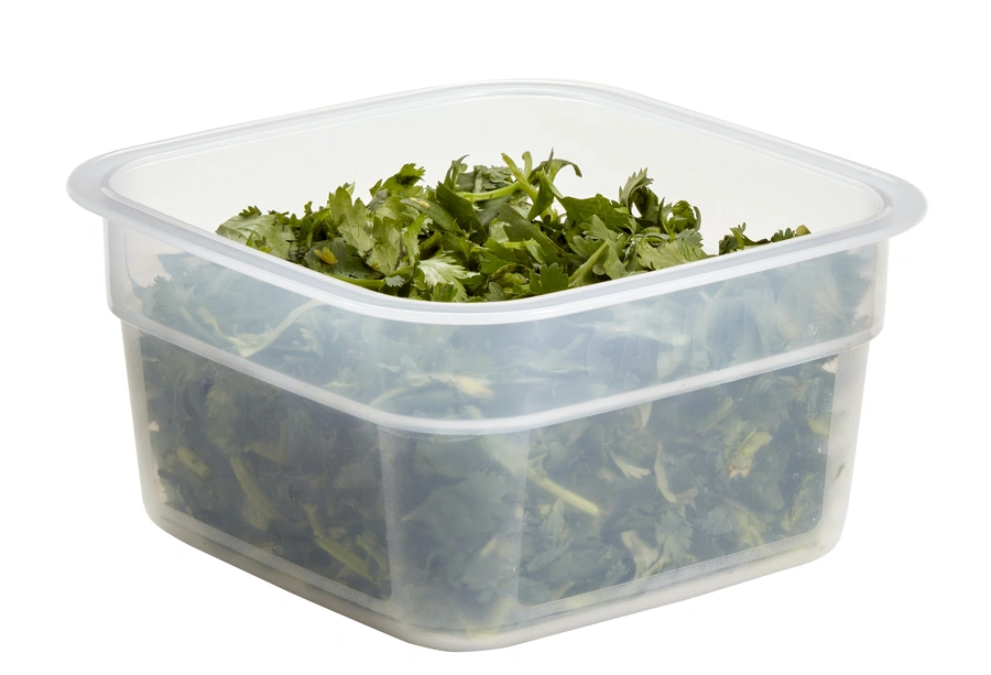 Keep your food fresh and organized at high temperatures with the Cambro HFSFSPROPP190 CamSquare® FreshPro Food Container. Made of durable white polypropylene, it can withstand temperatures up to 190 degrees Fahrenheit and features graduations in both standard and metric measurements. Perfect for commercial kitchens.
