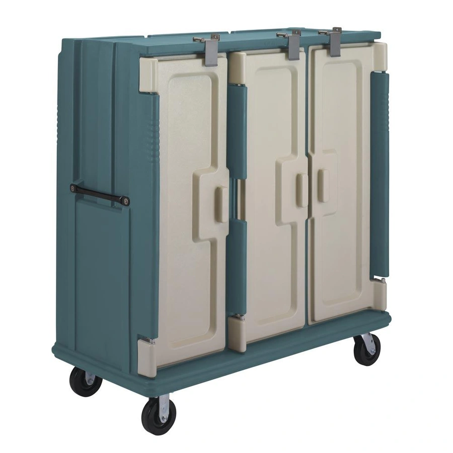 Designed for use in correctional facilities, the economical Cambro MDC1411T60 60 Tray Meal Delivery Cart holds a variety of compartment and insert tray options for versatile meal service. Featuring key security details including security screws and stop locks for safety and durability. Four non-marking casters and molded-in rails ensure maximum noise reduction during service, with easy, comfortable maneuvering. Protects food safe temperatures for hot or cold meals with thick CFC-free foam insulation inside double wall, easy to clean polyethylene. An effective specialized meal cart for correctional tray service, the 60 Tray Meal Delivery cart is rust, crack, dent, and break resistant.