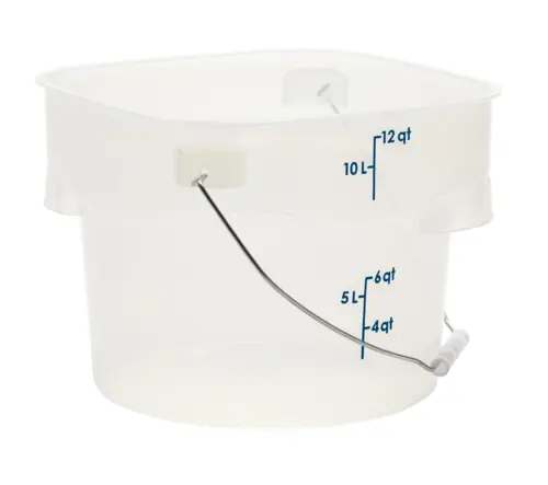 Constructed from heavy-duty polypropylene, the Cambro FreshPro pail resists cracks, stains, and odors, ensuring long-lasting performance in high-volume kitchens. Its translucent design allows for quick visual identification of contents, while bold molded-in graduations make measuring, portioning, and inventory management simple and precise.