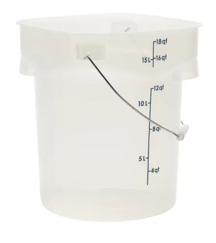Made from heavy-duty polypropylene, the Cambro FreshPro pail resists cracks, stains, and odors, providing long-lasting performance even in high-volume kitchen environments. Its translucent body allows for quick visual identification of contents, while bold, molded-in graduations simplify measuring, portioning, and inventory management.