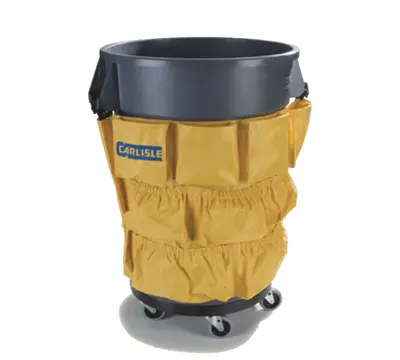 Carlisle 3691704 Tool Caddy Bag for 32 or 44 gallon Brute is uniquely designed to hold a variety of cleaning tools. Transform your waste container into a portable cleaning system with this adjustable caddy bag.