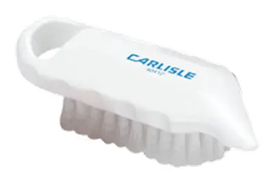 Medium stiff polyester bristles for aggressive cleaning. Brush features scraper edge for removing hard to reach blemishes.