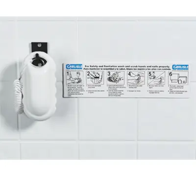 - Hand washing instruction decal in Spanish and English