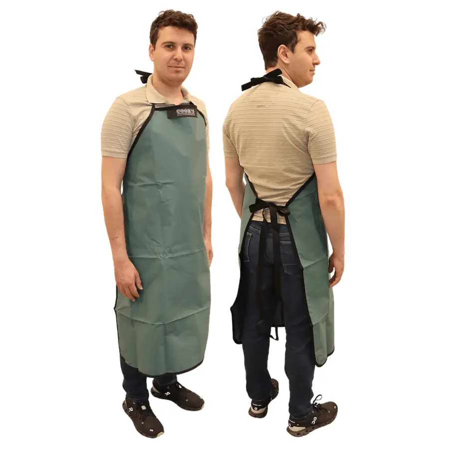 This Cook's Brand oversized dishwasher vinyl apron is your best choice for protection by repelling splashes and spills. Because of its bib style and full-length coverage, the apron keeps the wearer's clothing dry throughout their shift. Made of water-resistant double vinyl laminate and nylon mesh, this apron is extremely comfortable and more durable than standard plastic aprons. Thanks to its heavyweight construction, it supports high-volume dishwashing effortlessly.