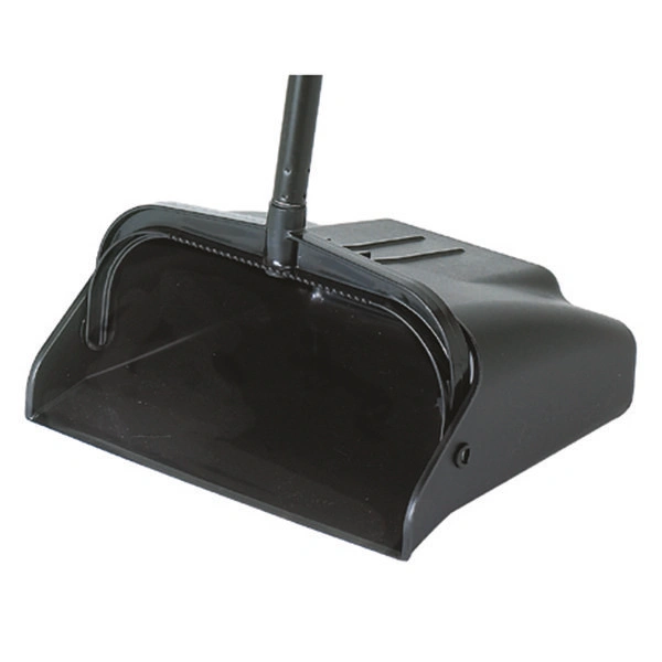 The Continental 912BK-12 10" X 12" Lobby Dust Pan features durable plastic hopper with a steel handle that has been vinyl coated. Pan snap-locks when in use and unlocks for carrying or stacking. storage hanger that takes up less room. There is no need for repetitive sweeping because the pan's real edge adapts to the floor. Area to "comb" debris from the lobby broom is provided by the serrated yoke.
