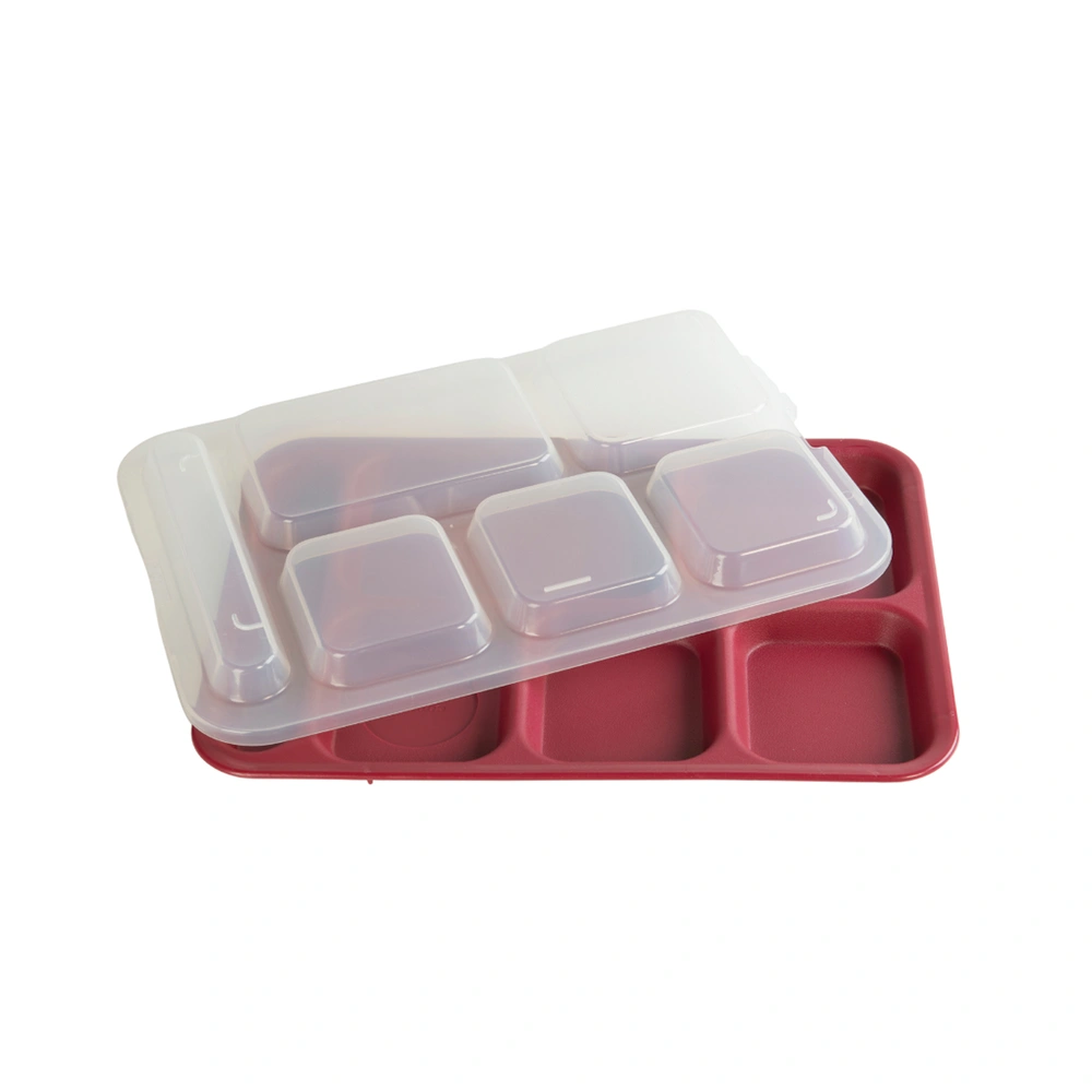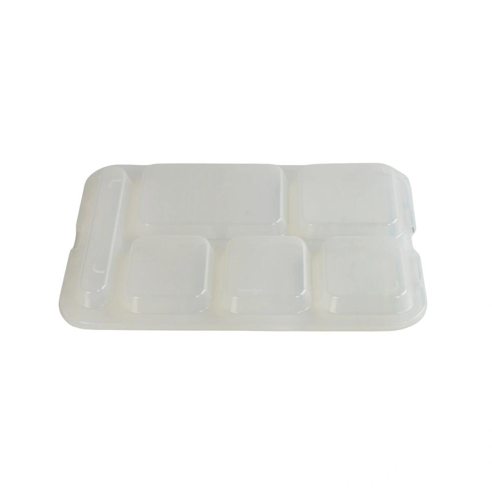 For use with the Cook's Brand 630-400 6-Compartment Trays - this lid allows for a translucent view into the tray contents and allows for easy stacking for more efficient meal delivery and transport.