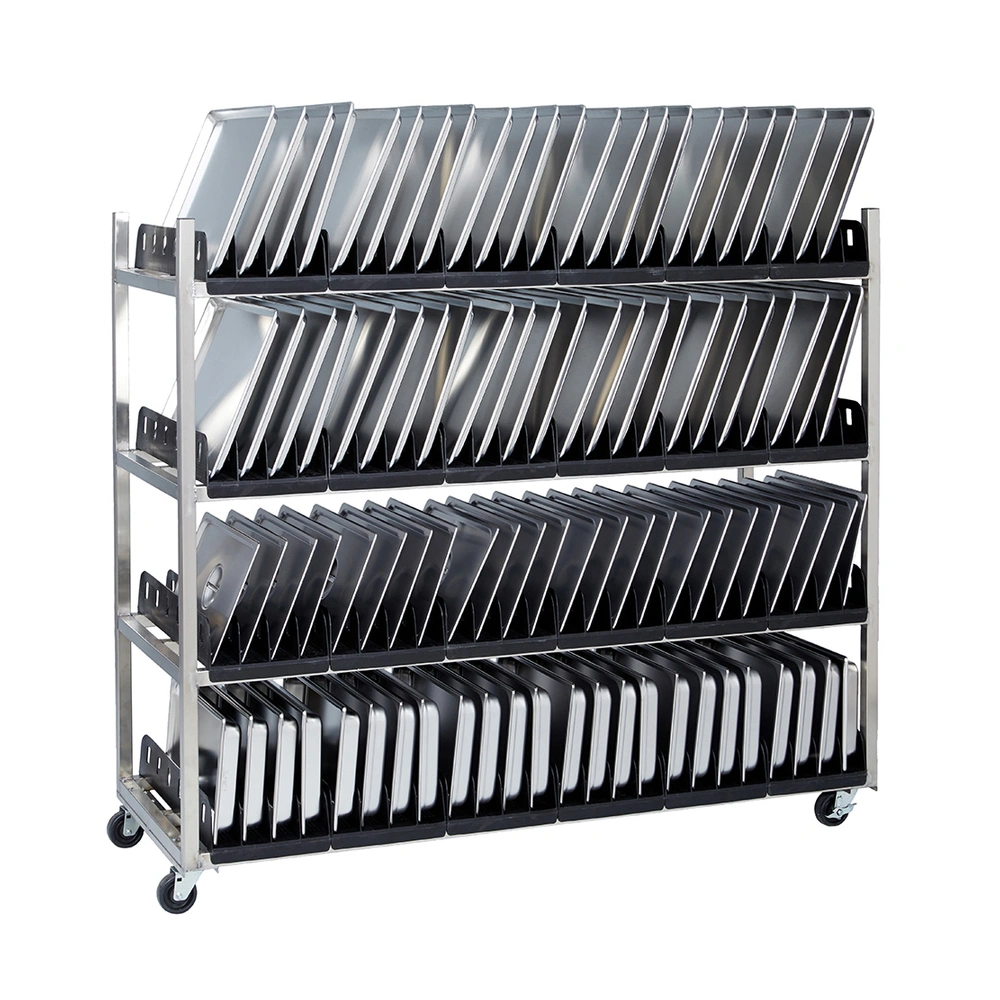 The Vented Sheet Pan Drying Rack is designed to promote faster, more effective drying of sheet pans than traditional sheet pan drying racks.