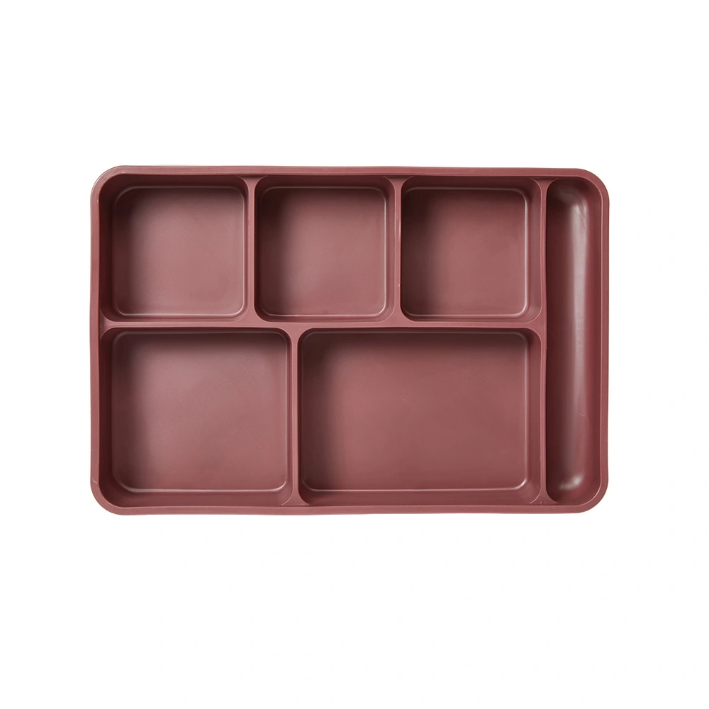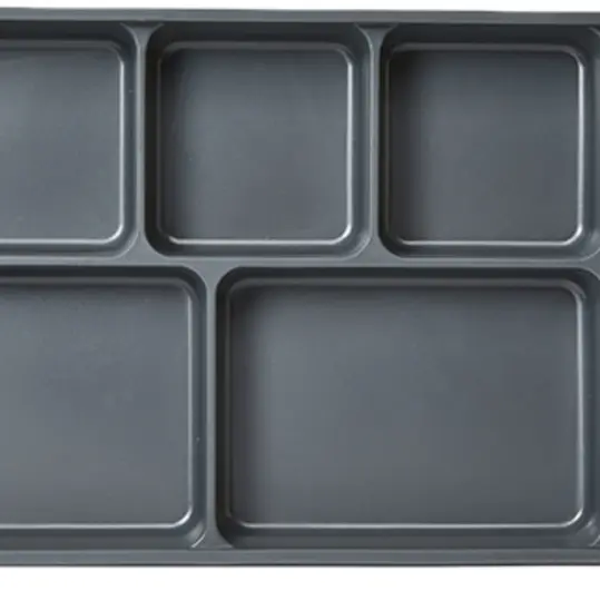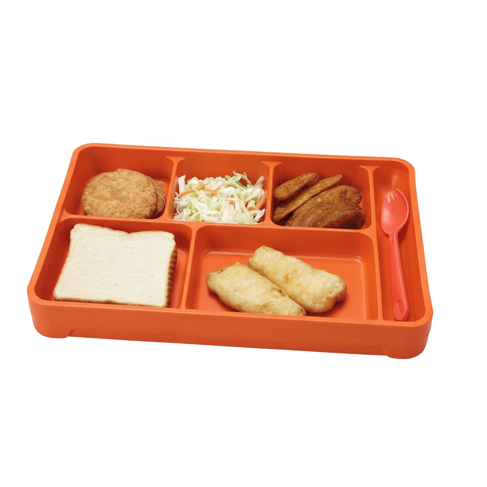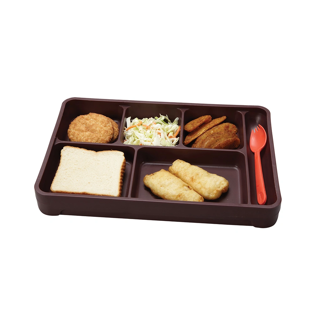 Its 6-compartment layout—including five food wells and a flatware slot—keeps meal components organized and secure during transport. Designed to maintain food temperatures for hot or cold meal service, this correctional meal tray helps reduce waste, increase efficiency, and improve mealtime safety.