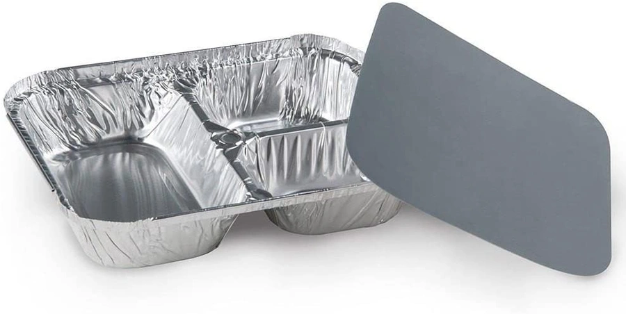Durable Packaging 21035L250 3-Compartment Oblong Aluminum Containers w/Foil Board Lids