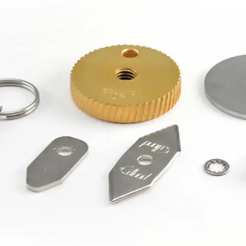 For continued performance, the opener includes replacement knife, gear, and screws, allowing easy maintenance without interrupting workflow.