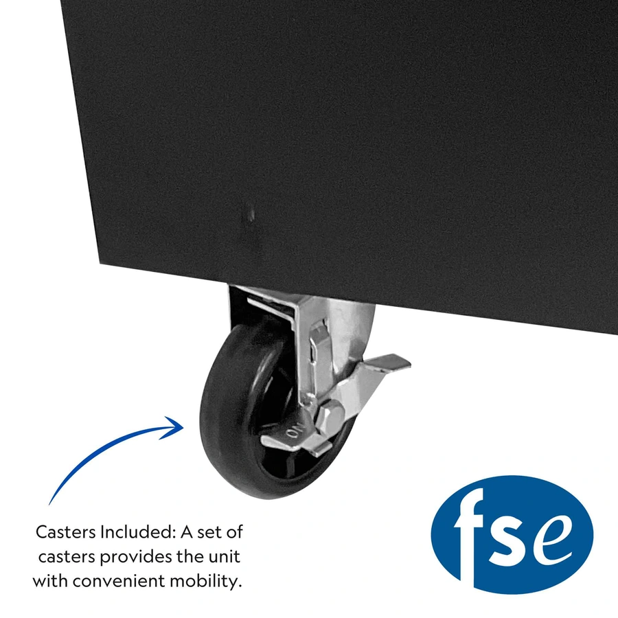 HEAVY DUTY CONSTRUCTION: The durable construction of this FSE merchandiser includes 304 stainless-steel interior walls and floor. The exterior features a black coated steel for a sleek appearance that is strong and permanent.