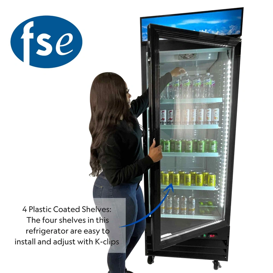 FSE 28-1/4"W x 31-3/4"D x 81"H One Section Merchandiser Refrigerator with Single Swing Glass Door and LED Lighting, Black, 115v, MRFS-1D/B