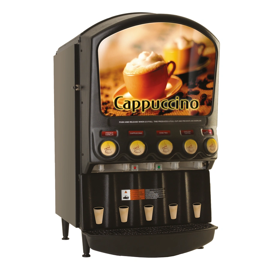Grindmaster-Cecilware PIC5 5 Gallon Tank (5) Clear-View™ Hoppers (5 Lbs Capacity Each) Electric GRINDMASTER PIC Hot Powder Cappuccino/Hot Chocolate Dispenser