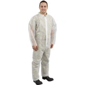 Disposable Protective Coveralls Convenient and economical, these non-woven polypropylene disposable coveralls provide complete clothing coverage for kitchen workers. Open wrists and ankles and a full zip front make these easy to put on and remove.