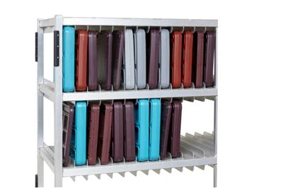 Innovative new design allows one rack to hold a variety of insulated trays!