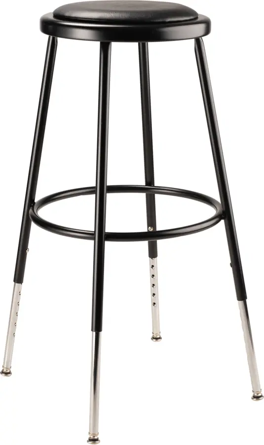 The NPS 6424H-10 NPS® 25"-33" Height Adjustable Heavy Duty Vinyl Padded Steel Stool delivers outstanding performance and comfort for demanding environments like science labs, art studios, and industrial settings. With its strong 18-gauge steel frame and industrial-grade vinyl seat, this stool is engineered for long-term use in high-traffic spaces. The 14-inch seat features a thick padded cushion upholstered in classic black vinyl that resists stains, making it both functional and easy to clean.