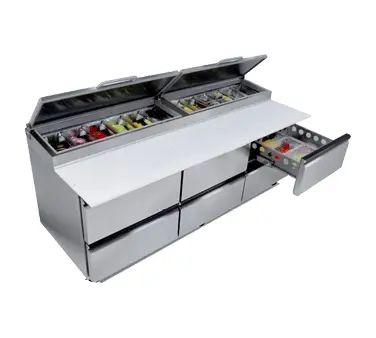 Silver King SKPZ92-FDUS10 (6) Drawers Raised Refrigerated Pan Rail With (12) 1/3 Size Pan Capacity 92"W Pizza Prep Table
