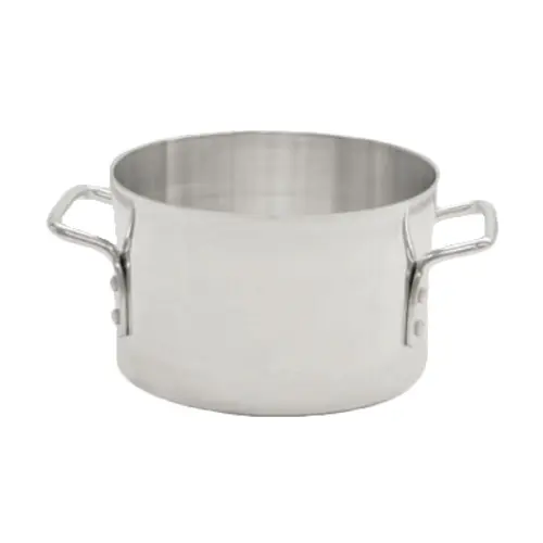 The reinforced rim and sturdy riveted handles provide additional durability and safety, making it easier to handle the pot when it’s filled with hot liquids. Built to withstand daily use, this sauce pot resists warping and maintains its shape under high heat, ensuring dependable performance over time. The smooth, natural aluminum finish allows for quick, easy cleaning, helping to reduce downtime in busy kitchens.