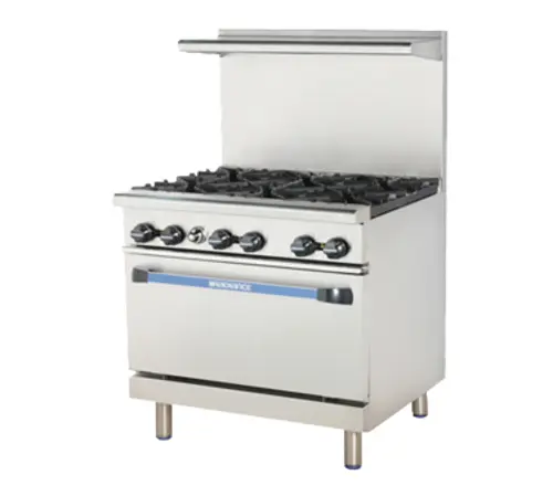 The Turbo Air TAR-6 Radiance Restaurant Range is a reliable, heavy-duty cooking solution designed to meet the rigorous demands of busy commercial kitchens. With its six powerful open burners and durable stainless steel construction, this restaurant range is built to deliver exceptional cooking performance, efficiency, and long-term value.