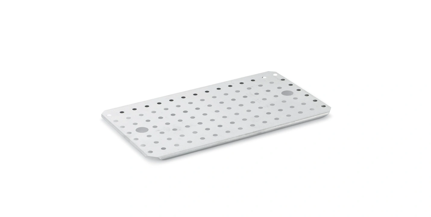 Featuring a perforated design for optimal liquid separation and airflow, the Vollrath 70100 false bottom simplifies cleanup and promotes sanitary food prep. Its easy-to-insert, removable design makes it compatible with Vollrath and other standard full-size pans, adding versatility to any kitchen setup. By preventing sogginess and maintaining the integrity of your ingredients, this false bottom is a cost-effective solution for improving workflow efficiency, food presentation, and overall kitchen performance. Elevate your prep stations with a tool trusted by professional chefs and foodservice experts.