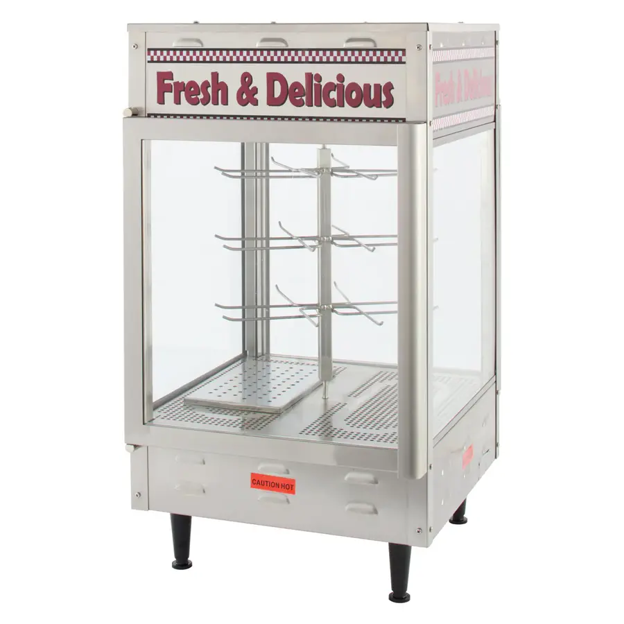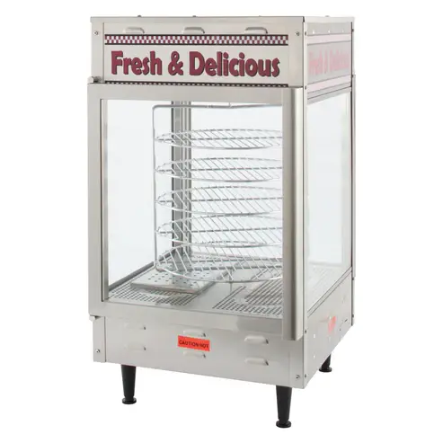 Constructed from high-quality stainless steel with heat-resistant panels, the Winco 51012 ensures long-lasting performance in high-volume environments. Its robust design maintains consistent heat, allowing prepared foods, baked goods, and hot menu items to remain at optimal serving temperatures. The sturdy construction also protects your food while providing a professional and polished appearance that enhances any front-of-house display.